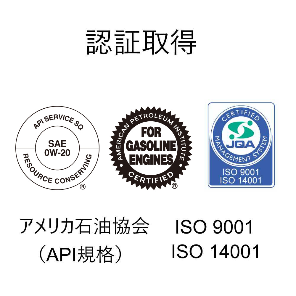 エンジンオイル品質規格であるAPI規格(アメリカ石油協会認定)の最新規格である【SP規格】を取得しており、中身は信頼性の高い”本物”の